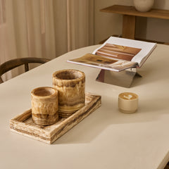 Met onze marmeren dienbladen voeg je gemakkelijk een verfijnde touch toe aan je interieur. De schoonheid van marmer past bij elke decoratiestijl, of het nu modern, klassiek of minimalistisch is. Het neutrale kleurenpalet van het marmer zorgt ervoor dat het dienblad gemakkelijk te combineren is met andere elementen in je interieur.