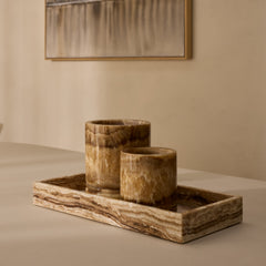 Elk dienblad is zorgvuldig vervaardigd met oog voor detail, waardoor het een luxueuze uitstraling heeft. Het gladde marmeren oppervlak maakt het ideaal voor sieraden, parfums of andere decoratieve voorwerpen.